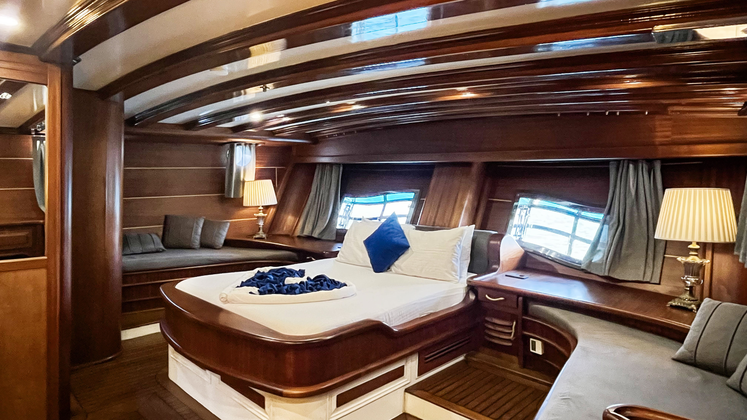 Refitted in 2023, she welcomes up to 8 guests in 4 spacious cabins — including a full-beam Master suite, a VIP cabin, and two flexible twin cabins — each designed for ultimate comfort.