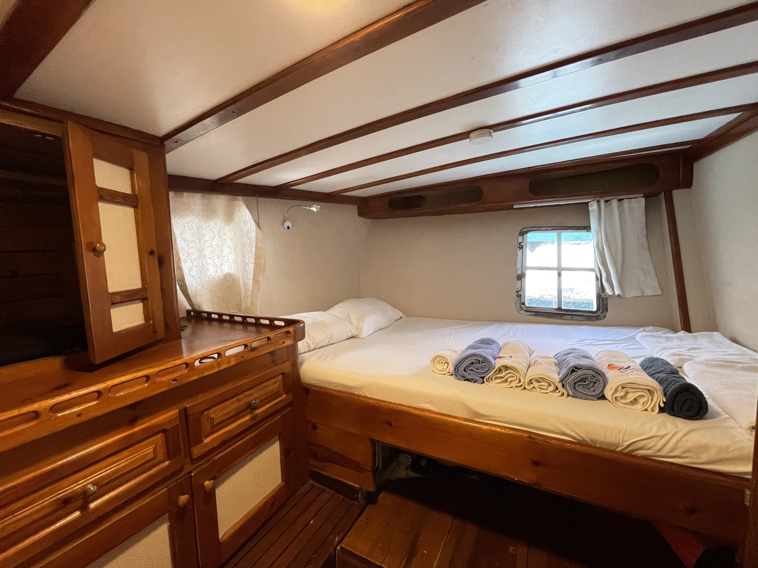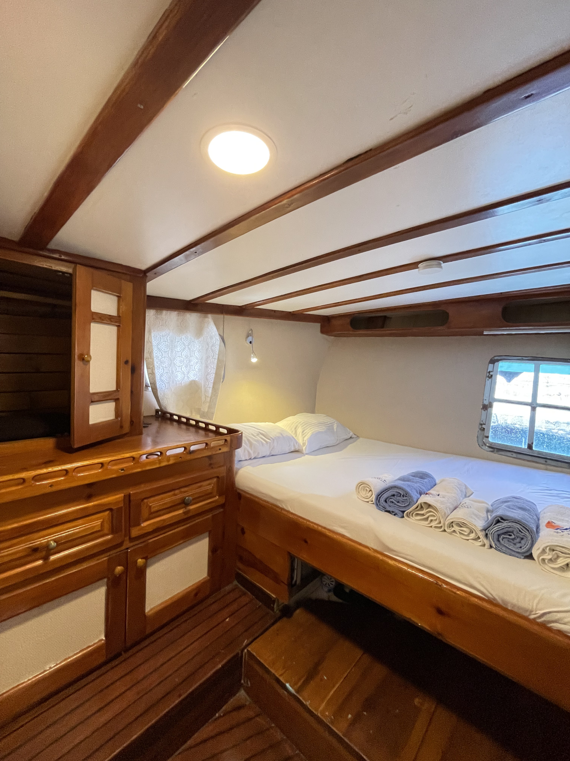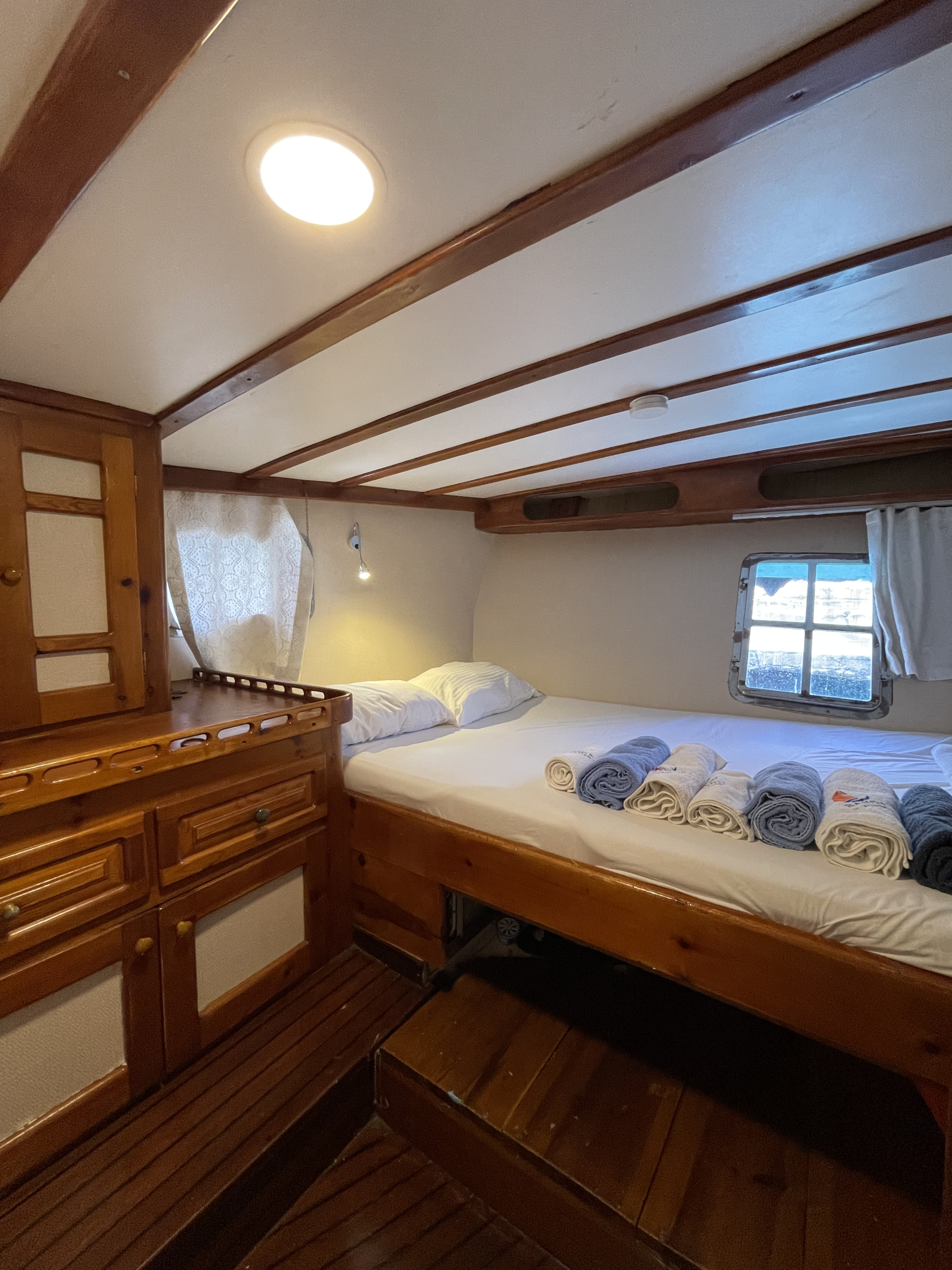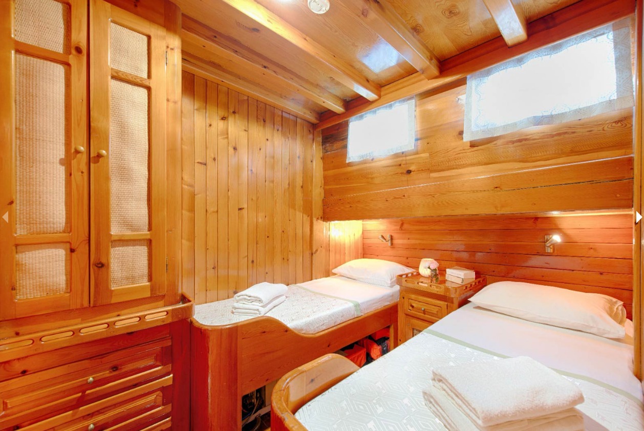 Refitted in 2013, Sanda Life combines classic wooden interiors with modern amenities, including air conditioning in all cabins and a 32 kVA Vega generator for smooth, uninterrupted voyages. Guests can enjoy delicious alfresco dining on the spacious aft deck, soak up the sun on wide foredeck loungers, or unwind in peaceful coves around Fethiye, her home port.