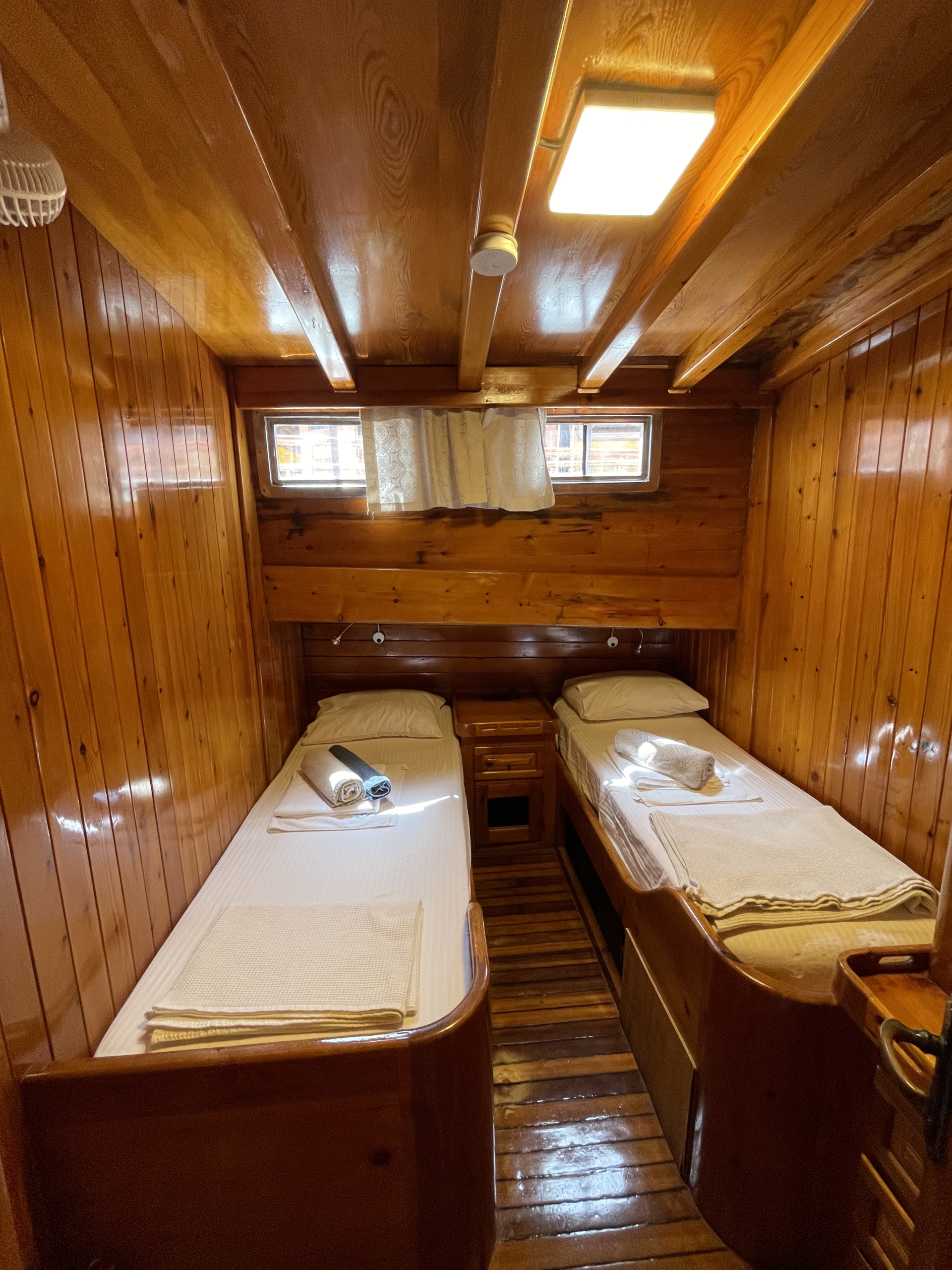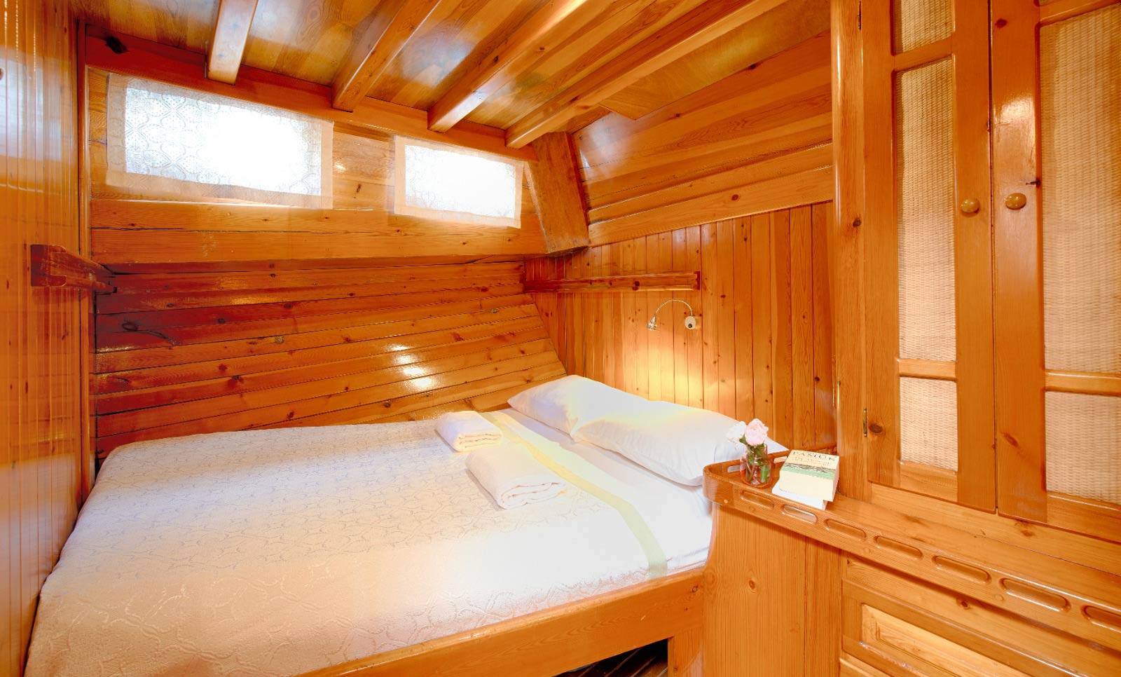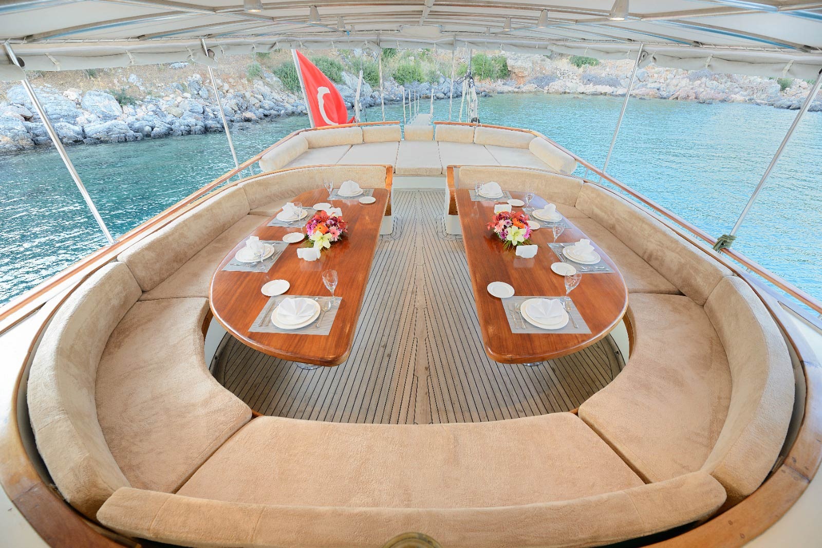 Refitted in 2013, Sanda Life combines classic wooden interiors with modern amenities, including air conditioning in all cabins and a 32 kVA Vega generator for smooth, uninterrupted voyages. Guests can enjoy delicious alfresco dining on the spacious aft deck, soak up the sun on wide foredeck loungers, or unwind in peaceful coves around Fethiye, her home port.