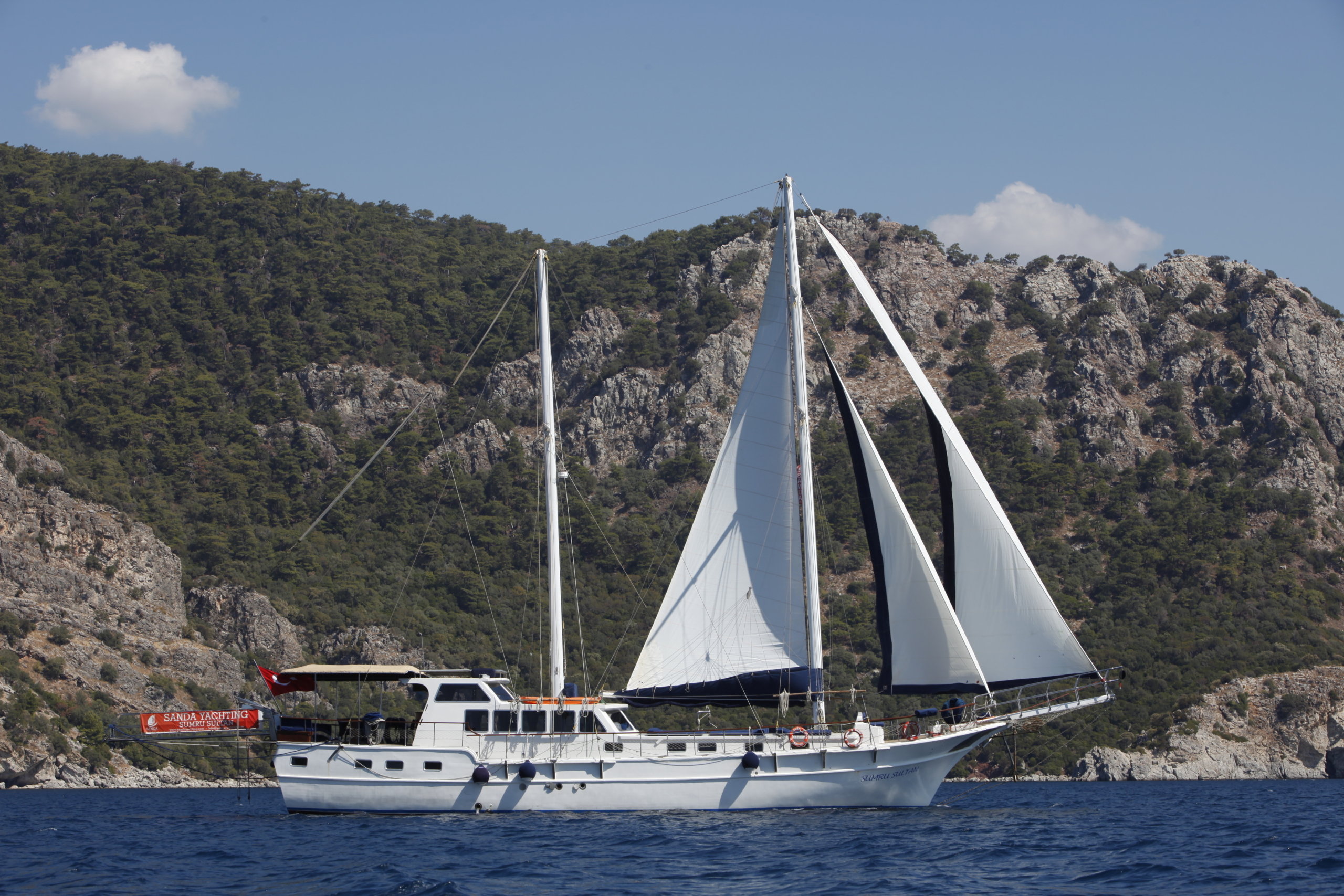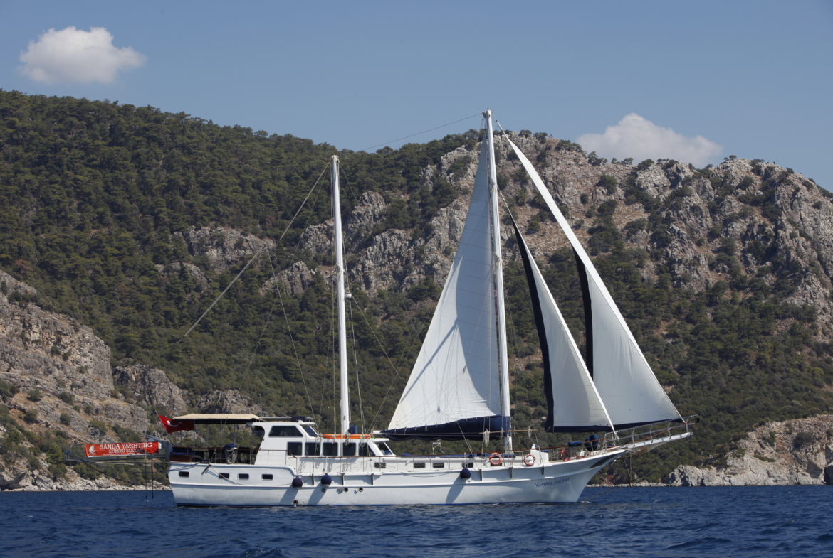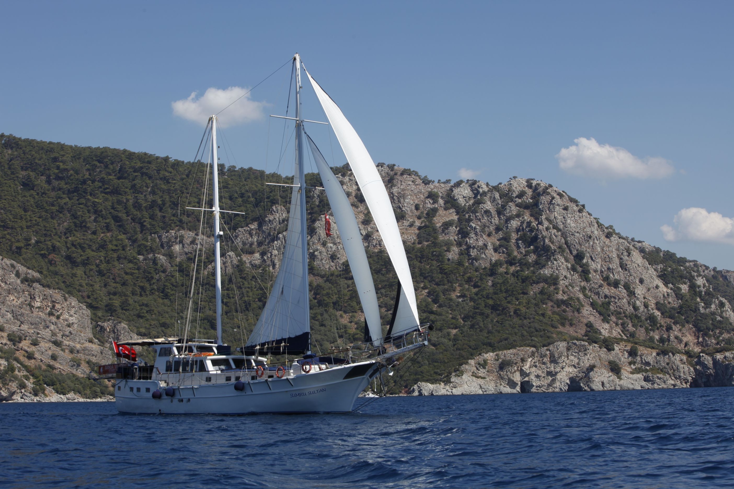 Sumru Sultan is a 25-meter classic gulet based in Fethiye, designed to host up to 16 guests in 8 comfortable double cabins. All cabins are air-conditioned and feature private bathrooms for a relaxed onboard stay. Built in 1998 and refitted in 2017, she blends traditional charm with modern comfort. With spacious sunbathing areas, a cozy lounge, onboard bar, Wi-Fi, and a fully equipped kitchen, Sumru Sultan is ideal for groups seeking a social and enjoyable Blue Cruise experience along the Turkish Riviera.
